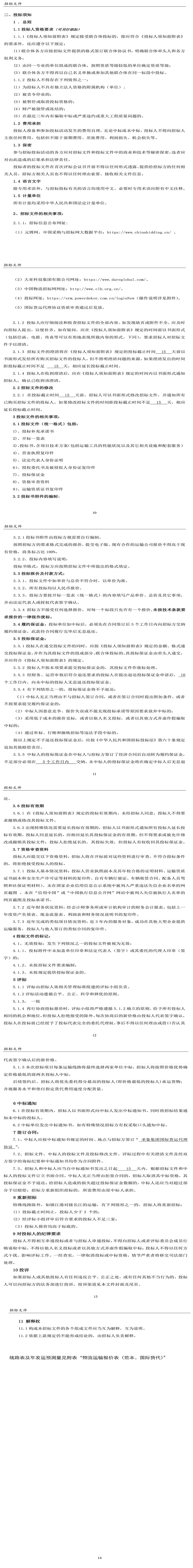 报价模板-2024进出口物流招标