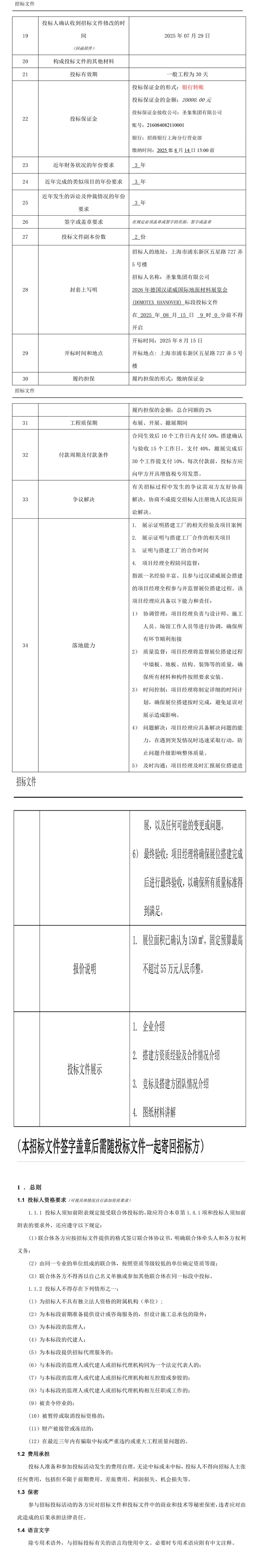 圣象集团有限公司2026德国汉诺威国际地面材料展览会(DOMOTEX HANNOVER)150㎡展位设计与搭建招标文件