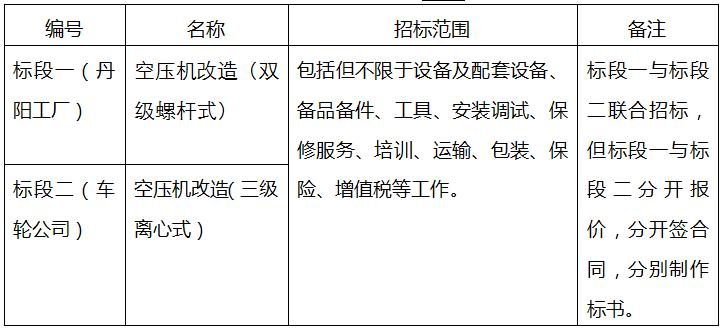2、 工程规模: 标段一为双级螺杆式空压机3台及流量计控制器等;标段二为三级离心式空压机1台、零气耗压缩热吸干机1台及开关柜流量计等。详见招标文件。