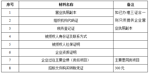 2、 凡有意向参加投标者,请在上述期间内按下表提供报名资料,相关证明文件的原件如无法提供原件则提供复印件加盖公司公章,投标人须将上述资料的扫描件发邮件至招标联系人处进行报名。