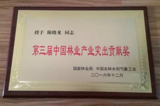 董事局主席、总裁陈晓龙先生荣获“第三届中国林业产业突出贡献奖”(个人奖)