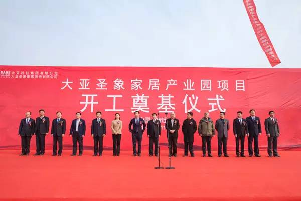 2017年1月11日上午,落户于宿迁市宿城区运河宿迁港产业园的大亚圣象家居产业园苏北基地年产50万立方米刨花板项目开工奠基仪式隆重举行。宿迁市市委常委组织部部长过利平,宿迁市人民政府副市长赵丽丽,大亚科技集团有限公司董事局主席兼总裁、大亚圣象家居股份有限公司董事长陈晓龙,区直各部门代表,特邀嘉宾及大亚圣象公司代表共200人参加本次的开工奠基仪式。