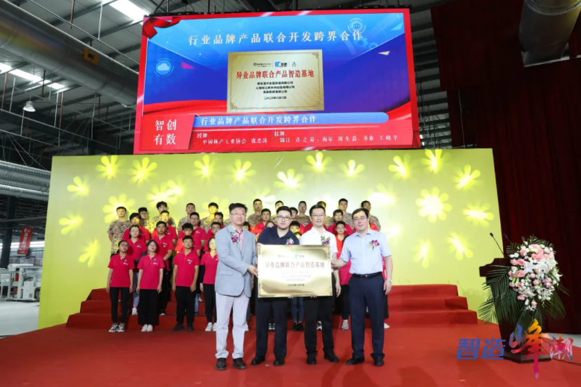 中国林产工业协会领导在量产仪式上表示,该项目起点高、面向全新消费和市场,特别是数字化赋能和跨界产业延伸,都成为行业创新的全新方向和示范,也正基于此,中国林产工业协会决定授予圣象句容生产基地为“中国林产工业产业数字化实现示范基地”。