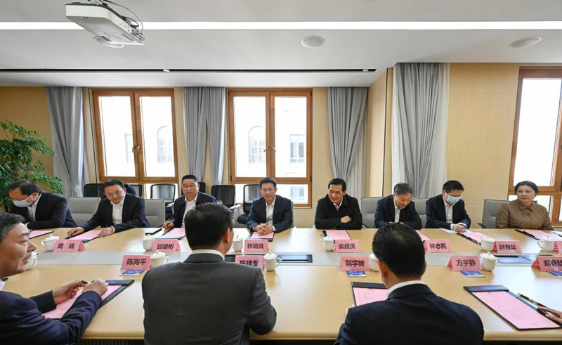 2023年2月7日下午,福建省副省长、南平市委书记林瑞良,市政府市长袁超洪一行莅临大亚圣象上海总部座谈交流。大亚圣象家居股份有限公司董事长、圣象集团董事长陈建军,大亚产业基金管理有限公司总裁陈海平,圣象华宇集团副董事长郭学婢等领导热情接待。