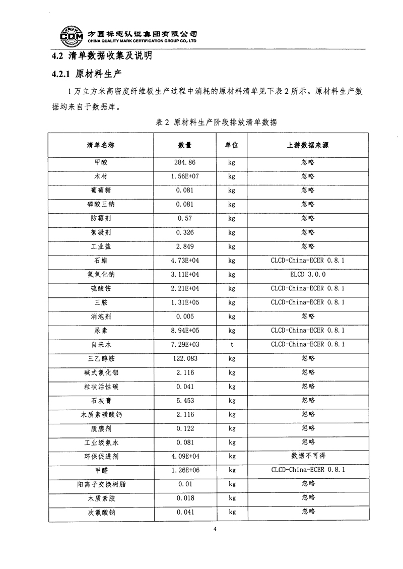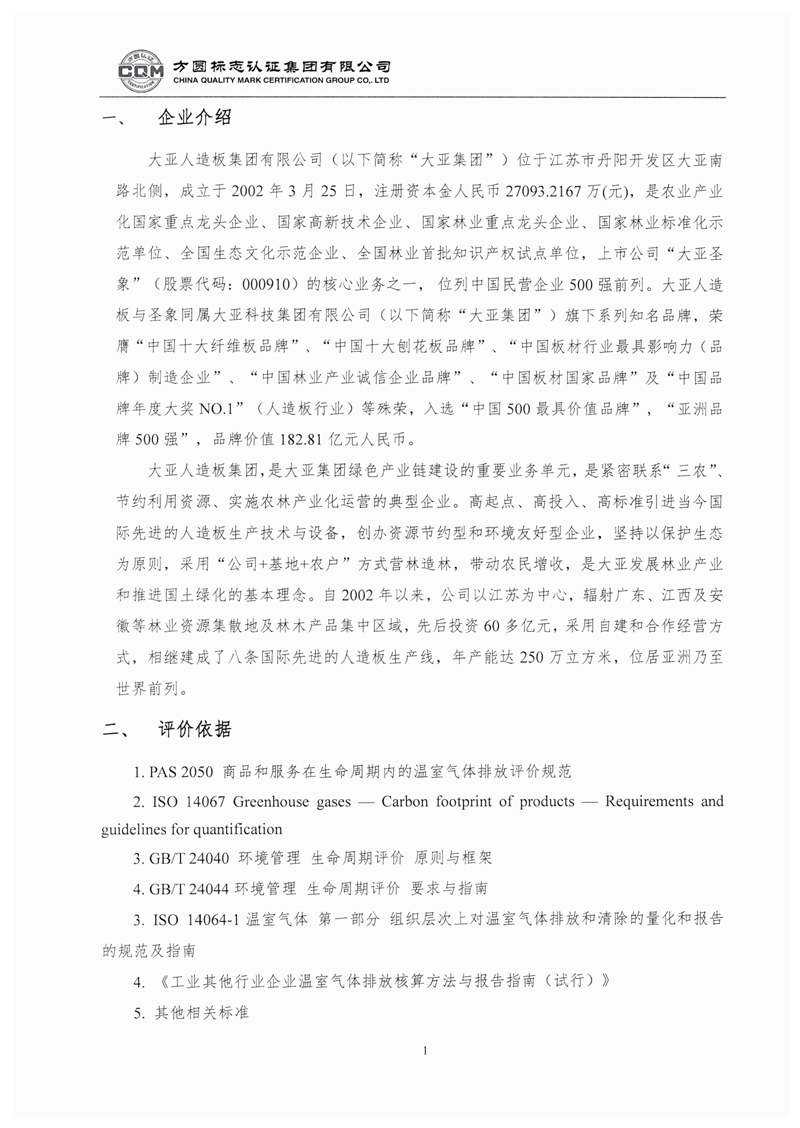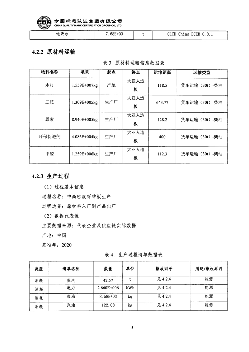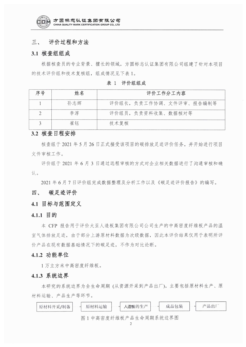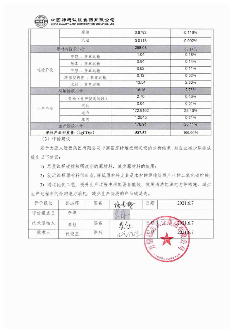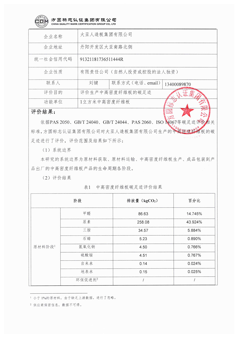 大亚人造板集团有限公司中高密度纤维板产品产品碳足迹评价报告自主公示