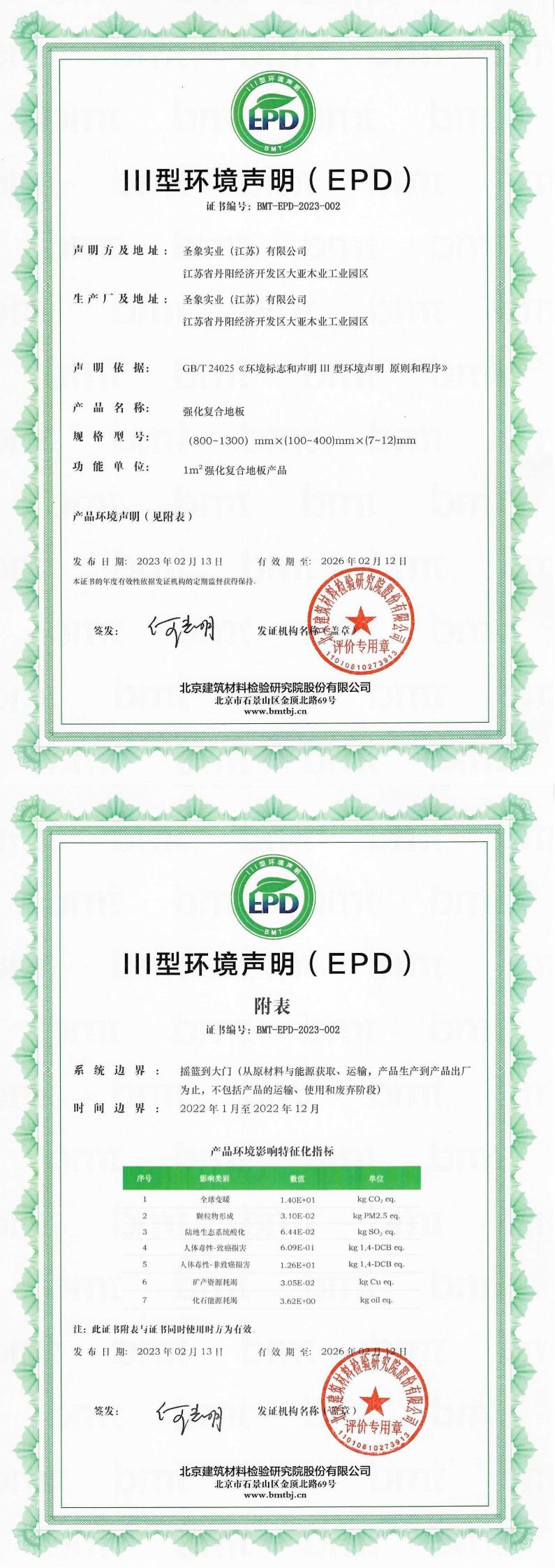 圣象实业(江苏)有限公司III型环境声明(EPD)
